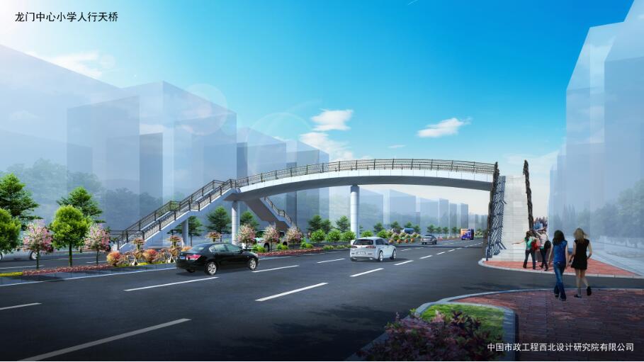 龍門中心小學(xué)人行天橋位于羅龍西路龍門中心小學(xué)西側(cè)約80米,主梁采用鋼箱型連續(xù)梁,腹板為圓弧形,主梁全長(zhǎng)33.8米,寬4米。梯道坡度1:2,長(zhǎng)16.9米、寬米,中間設(shè)置緩步平臺(tái)??偼顿Y約400萬(wàn)元。
