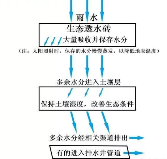 什么是海綿城市?簡言之,就是城市像海綿一樣有彈性,能吸水、蓄水、排水,實(shí)現(xiàn)水循環(huán)利用、有效防內(nèi)澇。鋪設(shè)生態(tài)透水磚,是除雨污分流改造外,我市海綿城市建設(shè)的一個(gè)重點(diǎn)和亮點(diǎn)。鋪有生態(tài)透水磚的人行道,看上去好像與鋪設(shè)普通磚的人行道沒什么兩樣,但仔細(xì)一看就會發(fā)現(xiàn)有所不同,生態(tài)透水磚表面布滿小孔,而普通磚表面比較光滑。這是因?yàn)樯鷳B(tài)透水磚以礦渣廢料、石屑、普通硅酸鹽水泥為主要原料,設(shè)計(jì)有一定孔隙率,經(jīng)高頻振動加壓而成,普通磚則主要用石粉廢渣、低標(biāo)號水泥等制成下雨時(shí),生態(tài)透水磚能大量吸收并保存水分,達(dá)到飽和狀態(tài)后保存不了的多余水分則透過磚體進(jìn)入土壤層,從土壤層出來后的多余水分最后經(jīng)相關(guān)渠道排出,有的通過排水井管道排出。而普通磚只能吸收少量水分,大部分水經(jīng)由地表流掉,易導(dǎo)致路面積水。