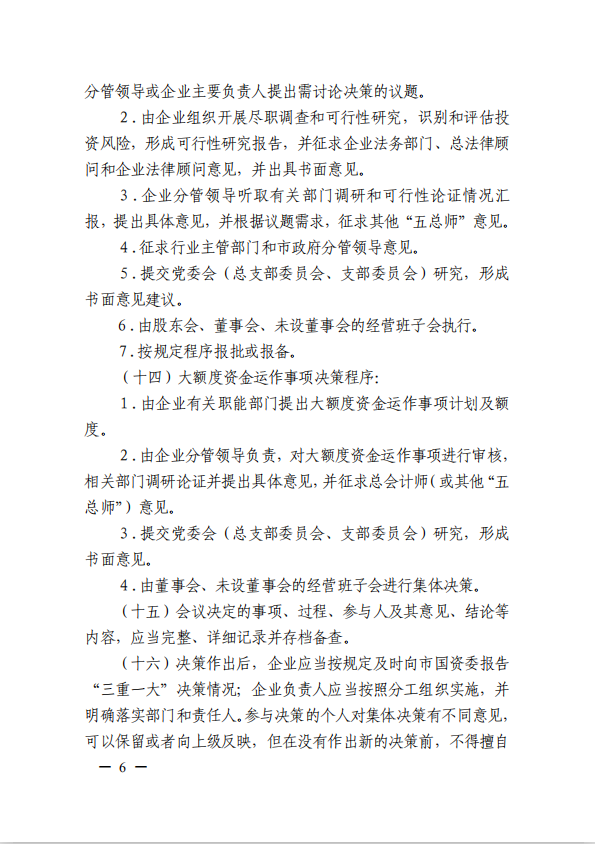 關(guān)于進(jìn)一步規(guī)范市屬國(guó)有企業(yè)貫徹落實(shí)“三重一大”決策制度實(shí)施意見(jiàn)(國(guó)資黨委[2020]21號(hào))
